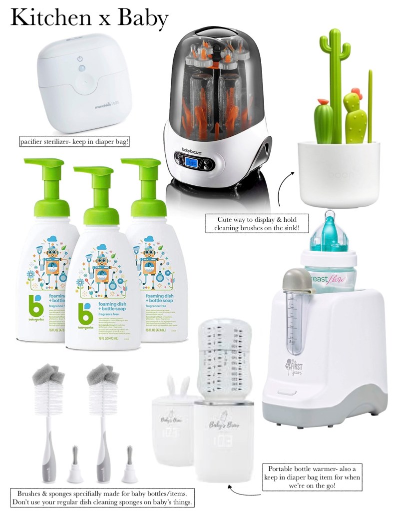 Before baby girl’s arrival, I cleaned out an entire cabinet in our kitchen to make room for all things baby related. I’ve gotten a few messages on Instagram asking about if I’m using particular things so today I thought I’d throw together a post of all the things that are currently in my kitchen, related to baby. Of course I know this list is only going to expand as baby girl gets older, for instance, we already have our high chair and some feeding utensils for solids, but for right now I’m only linking the things we’re actually using, for the fourth trimester.