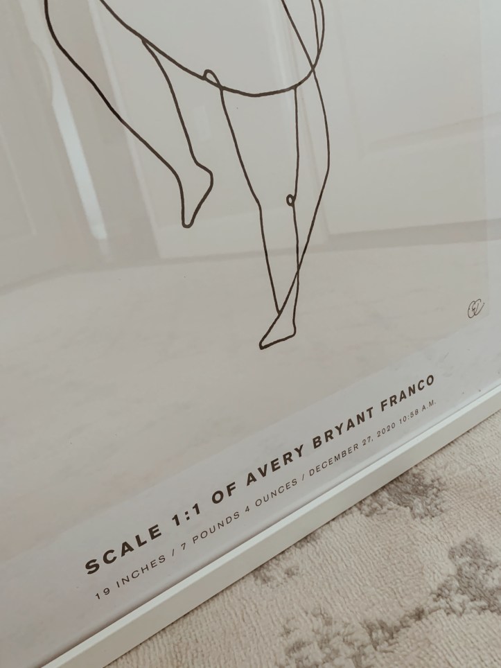 I absolutely love the design and think it definitely elevated the decor of our nursery. They have different versions and baby “positions” to choose from, which makes finding something to match your aesthetic super easy! When Avery is older, I can’t wait to show her the posters and be able to tell her that that was how small she was when she was born! Babies grow so fast (Avery is already so big which makes me cry) so having their newborn moment captured in this way is super special.