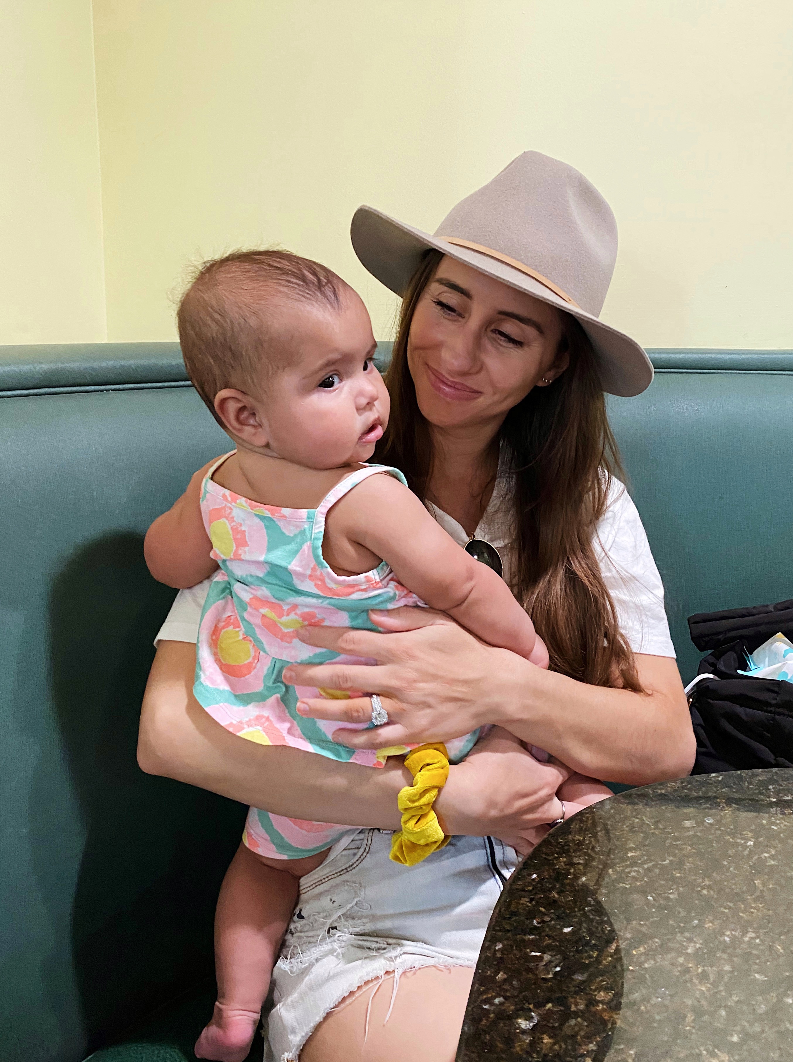 The rest of the day was spent relaxing in the pool and then enjoying dinner with family. Sunday consisted of much of the same, along with the most delicious family brunch! Monday morning, after having breakfast, we left to head home. It was the most relaxing weekend away and was definitely a good introduction to the new normal that is traveling with a baby! We for sure packed way too much stuff- like the bouncer that Joey literally had to unscrew to fit in the car and then screw back together at the condo. She didn’t sit in it once while we were there, so that could have easily stayed home!