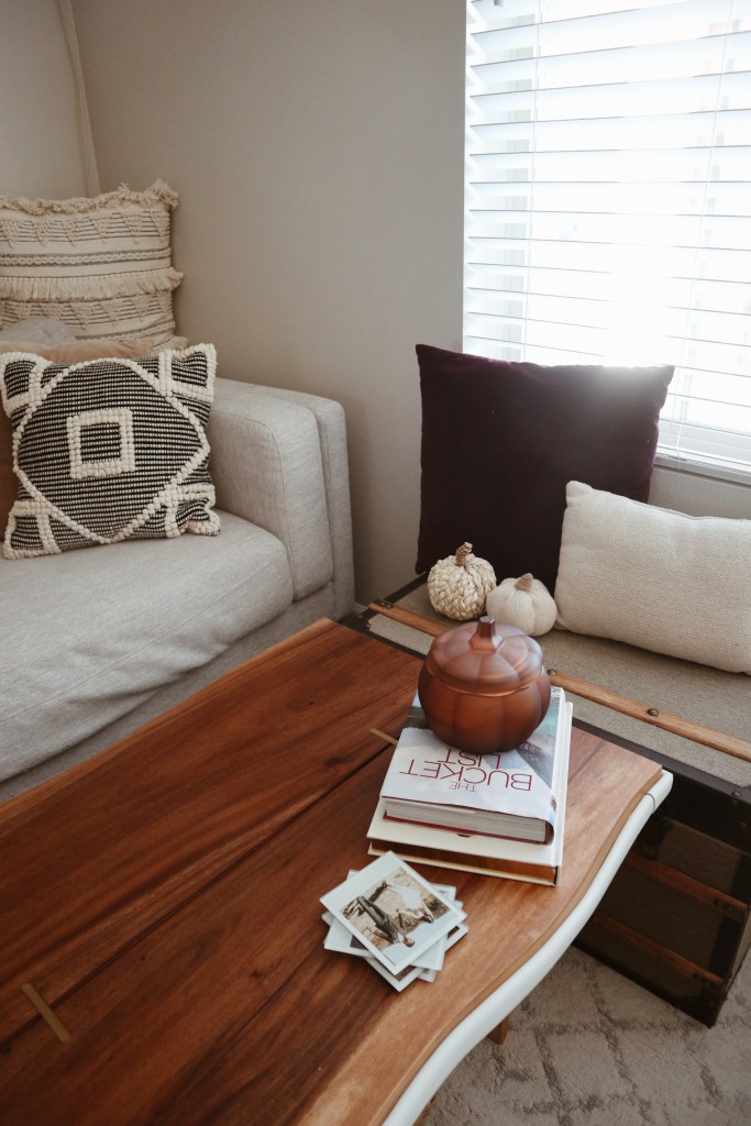 In my opinion, you don’t have to go too crazy with decorations to really set the vibes within your space. A woodsy/pumpkin scented candle could easily do the trick!