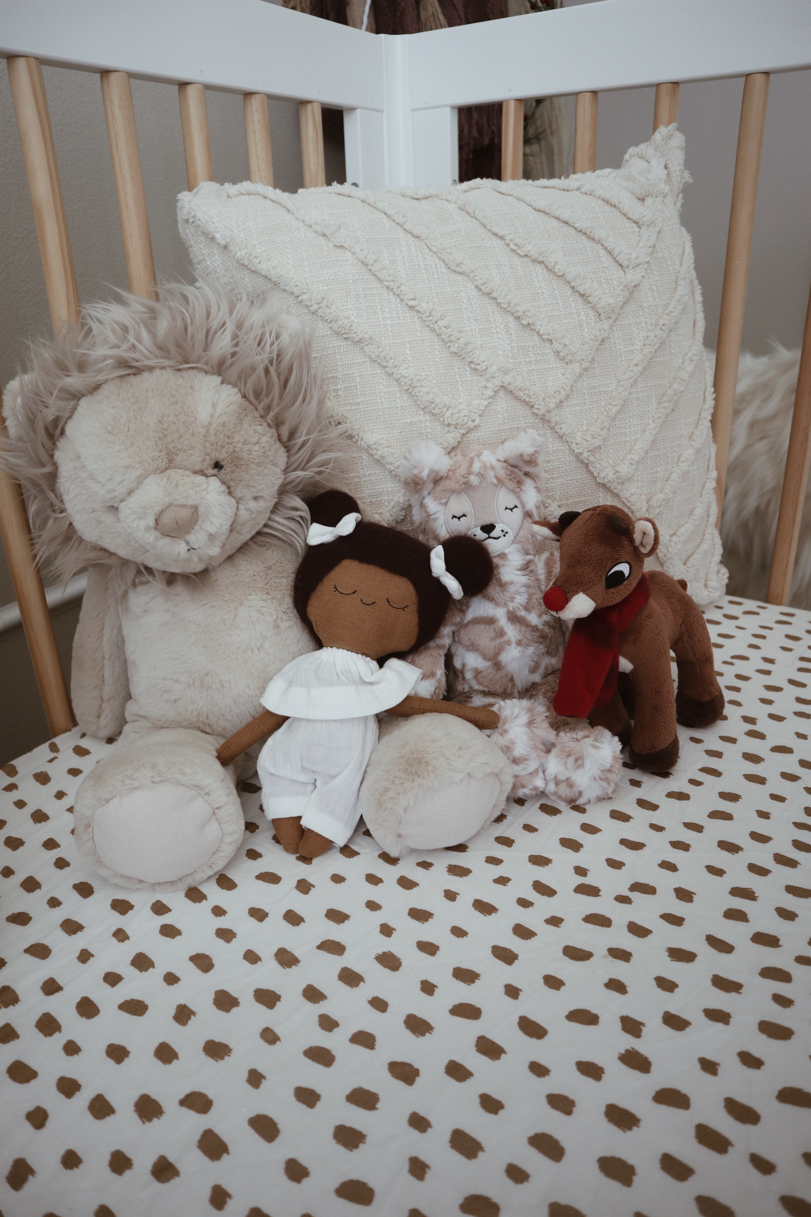 And to finalize the decor, I couldn’t NOT decorate Avery’s room. I did, however, do very minimum decor since again- she’s a baby on the move and enjoys exploring every nook and cranny of literally anything (curious little mind)! Her cousins bought her the most adorable reindeer stuffed animal that I’m obsessed with, so I had to make that the center of attention for sure! Avery loves grabbing it when I’m holding her and she’ll lean forward to give kisses, it’s the sweetest thing.