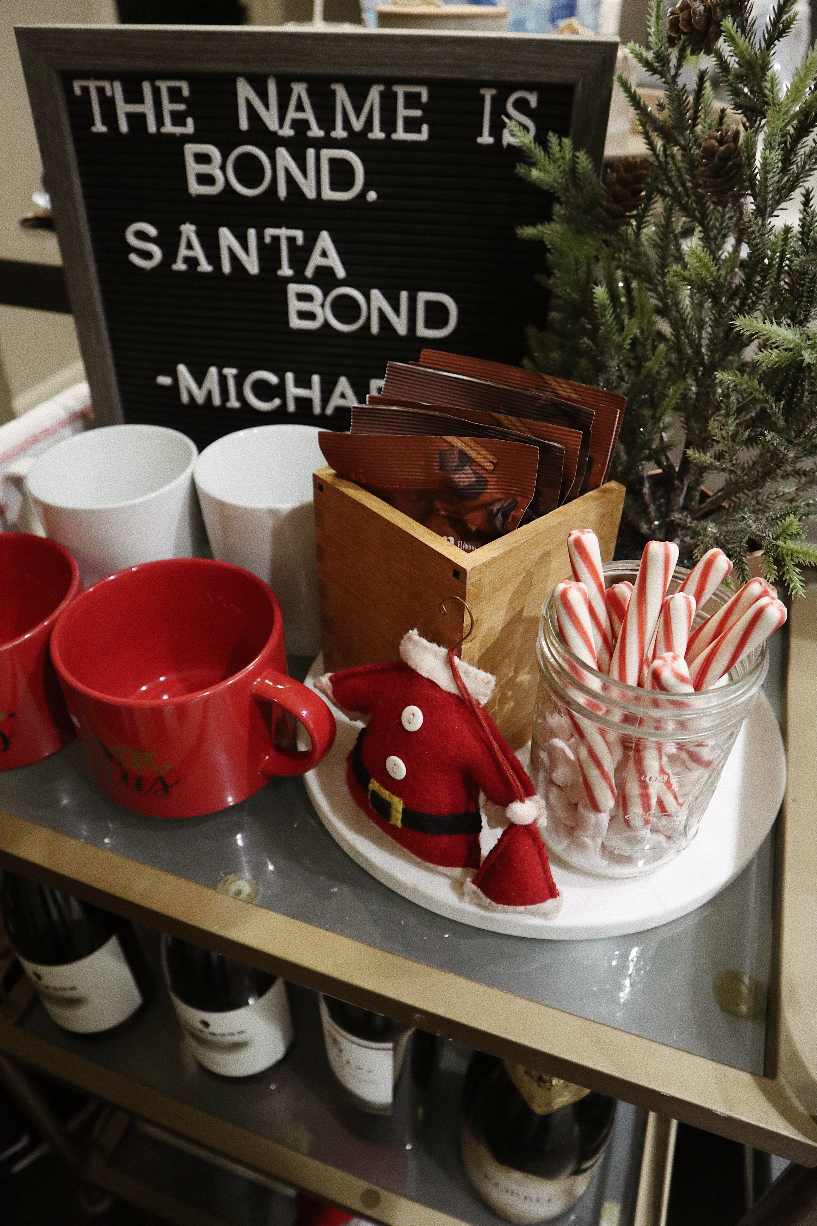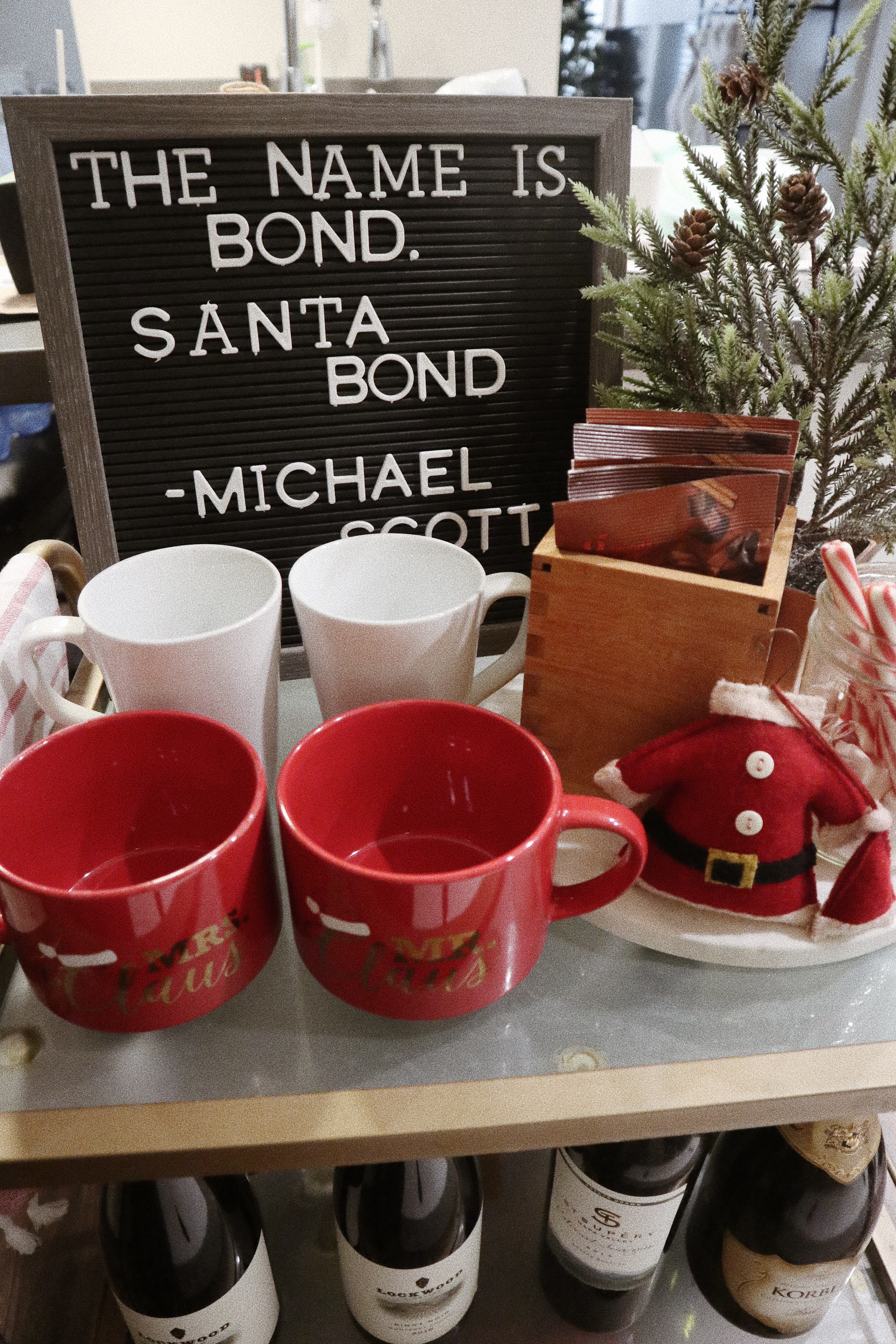 This year, I turned our bar cart into a hot cocoa bar and if you’re an Office fan, I think you’ll appreciate it a little more.