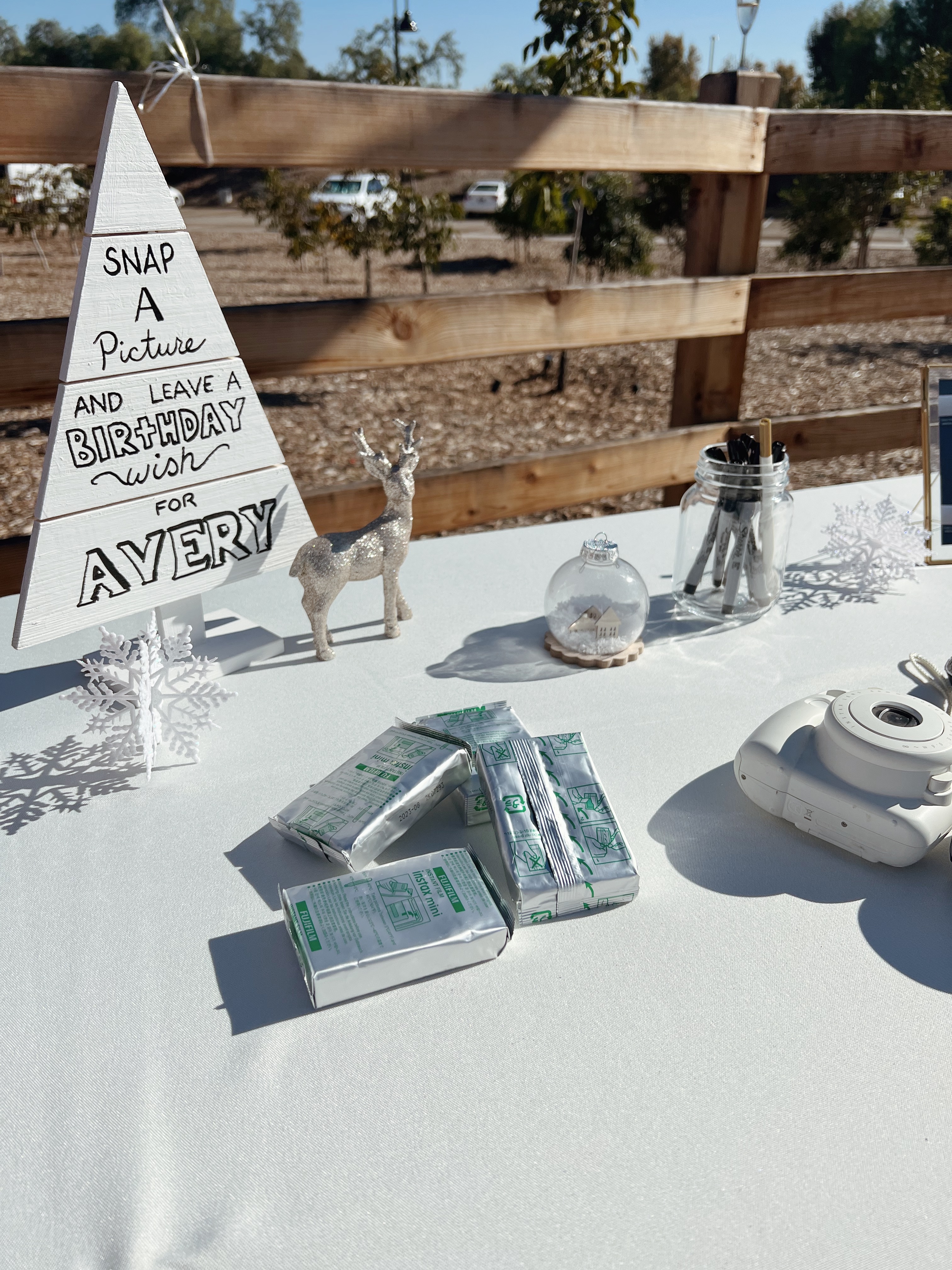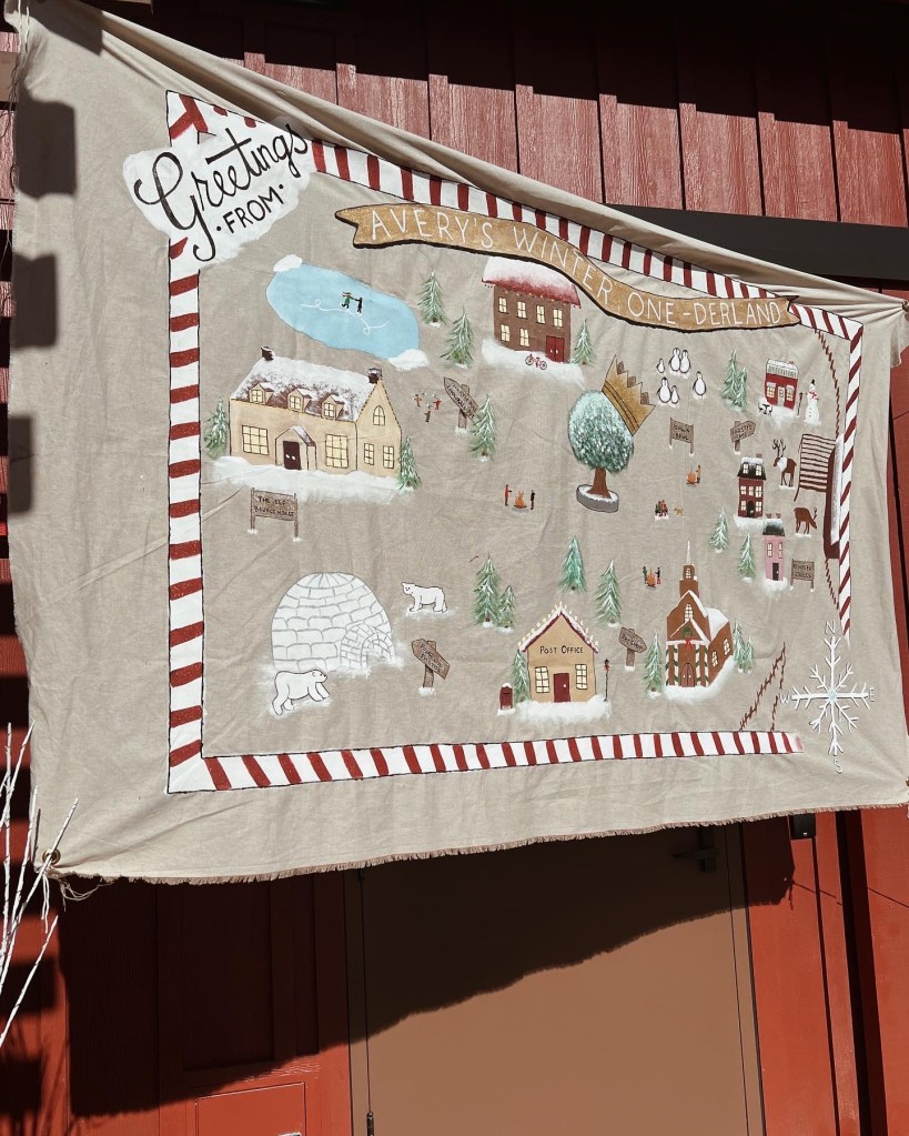 Upon entering the venue, guests were greeted by our “Avery’s Winter Onederland” map of the site. Joey painted it based on the little areas we designed throughout the venue. This is something we definitely plan on keeping forever.