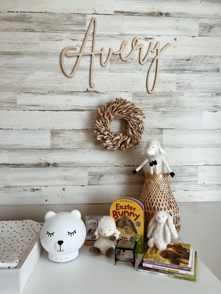 I also started to set Avery’s room up for spring and Easter! I’ve been decorating her dresser for each holiday and pulling any relevant books from her bookshelf for a quick read before bed! I plan on adding a little bit more and will definitely share more photos as I do!