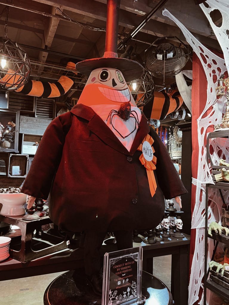 I know I’ve mentioned this before, but for the past couple of years, we’ve been going to a place out here In Orange County called Roger’s Gardens during the Halloween season. They always do a fun, themed Halloween boutique and this year their theme was in fact, THE NIGHTMARE BEFORE CHRISTMAS!
