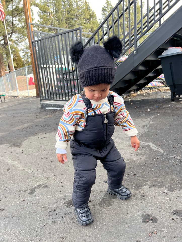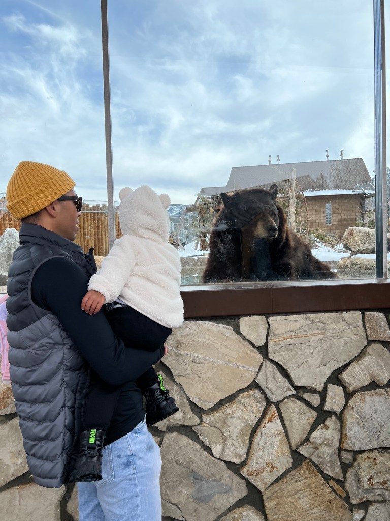 We left Orange County early in the morning and when we got into town, we parked the car and let Avery walk around their downtown area and play in the patches of snow that filled the neighborhood parking lots. After stretching our legs we hopped back in the car and drove to the Big Bear Alpine Zoo. The Zoo itself is not very big, but it’s spacious enough for little ones to run around and get some energy out! They are also a rescue zoo, which is why they don’t have a ton of animals- only ones that are unable to survive in the wild due to injuries, people wrongly purchasing for pets, etc. So a place like that has my support! Avery was pretty attached to the bear we saw when we first walked in and spent about 30 mins just watching it and pointing to it (really cute!!)