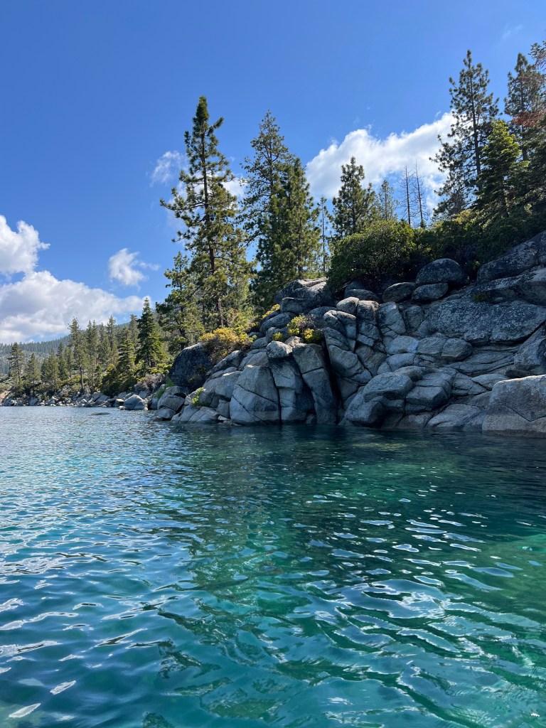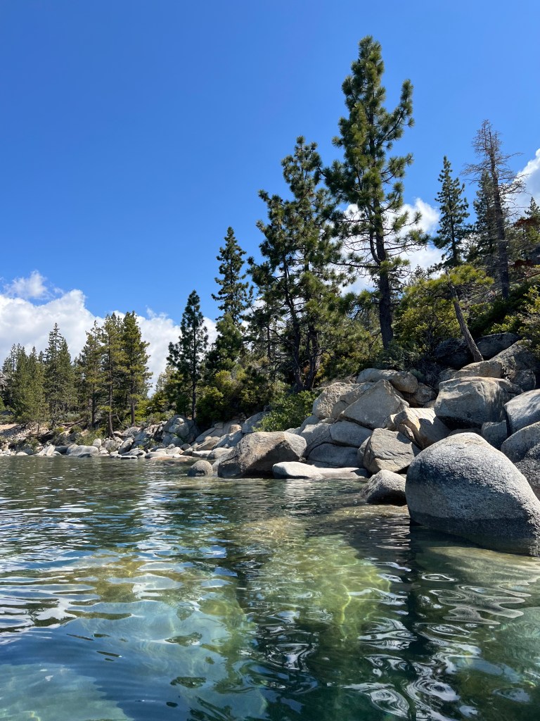Tuesday was kayak day! For whatever reason, despite staying up later than usual, Avery decided to get up at 6:30 in the morning. I think she probably heard something outside in the trees because I was waking up a little bit each morning for the same reason. Joey likes waking up early and was already ready to hit the water so we got ready, jumped in the car, grabbed some coffee and bagels at Drink Coffee Do Stuff (which was AMAZING) and drove straight to Sand Harbor to get a parking spot and beat the crowds. If you’re planning a trip to Tahoe, I definitely suggest getting to your location early for hiking, biking, or kayaking. The parking lots fill up fast and once they’re full, the gates are shut for the day. We were one of the first people on the lake and it was so beautiful, calm, and peaceful! The water was still and looked like glass, it was amazing. By the time we got on the water, it was around 9 am.
