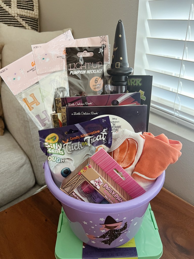 Alright so last year I started this little tradition of giving my daughter a boo basket. I think some people give them on Halloween but I choose to fill my daughter’s basket with goodies and give it to her on October 1st so that she can actually use and have fun with the little tricks and treats all month long! This year, this is what I filled her little basket with!
