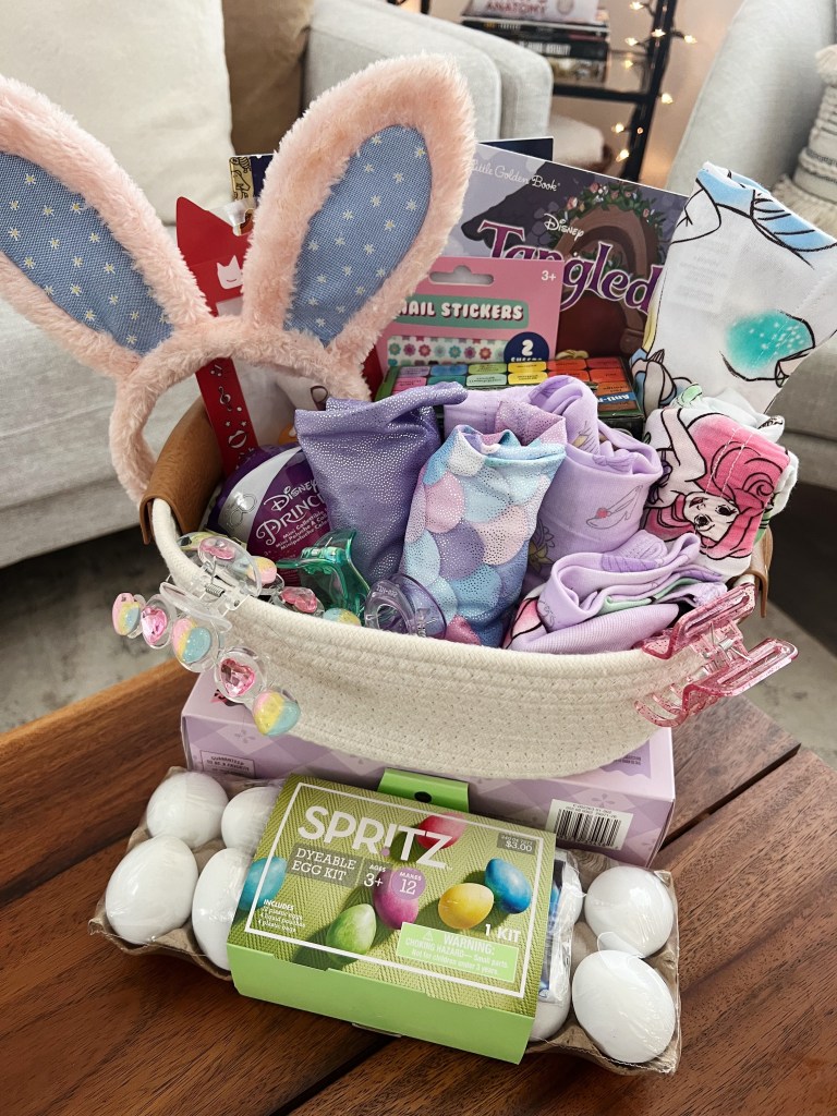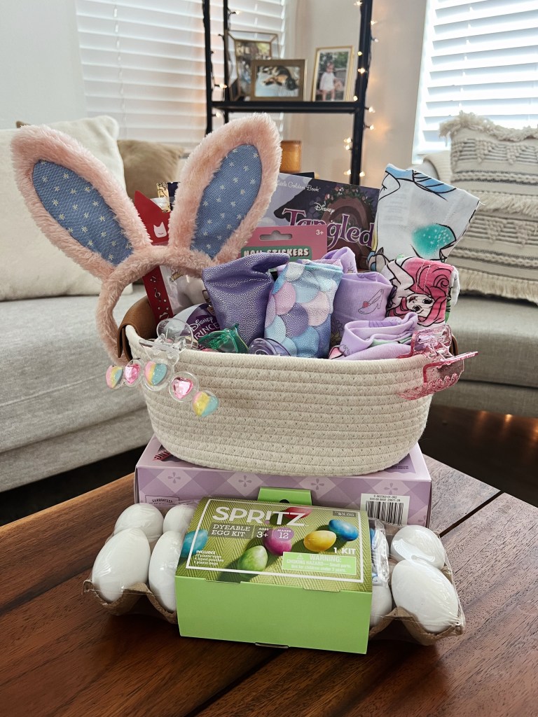 Whenever I make my daughter an Easter basket I try to fill it with things I know she is going to love and use and play with and I typically steer away from any candy or plastic eggs full of things simply because I know that’s what her grandparents will fill their baskets with for her and lord knows we do not need to have a million plastic Easter eggs floating around our house. Here’s everything I put in Avery’s basket this year and I can’t wait to give it to her!