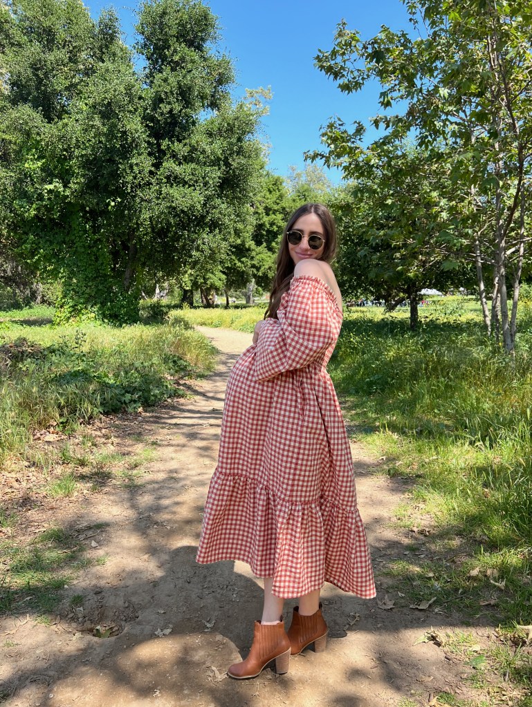 + gingham midi dress : they also have a version that has short sleeves! Would be super cute for a family BBQ!