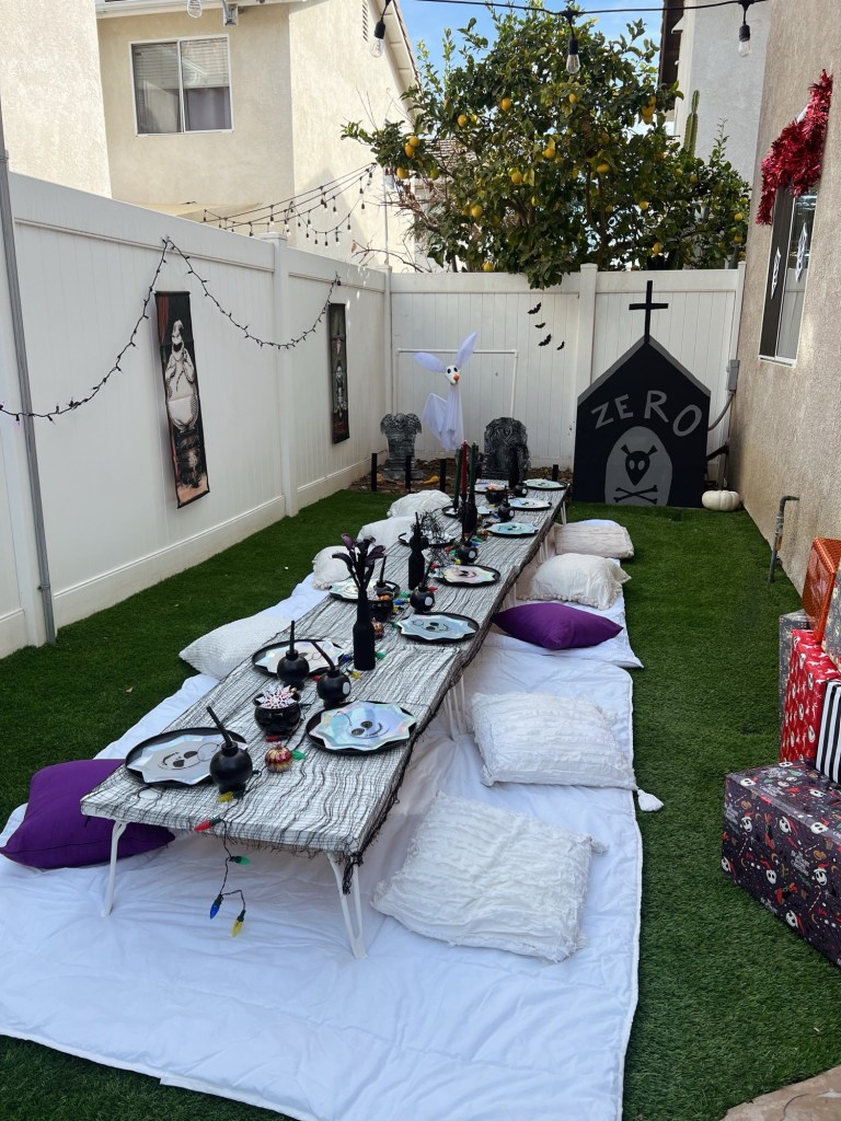 I spent months planning and shopping- literally starting in August for her December birthday party lol, but I knew I’d have to grab all the Halloween-y things early or else they’d be long gone come Christmas time!