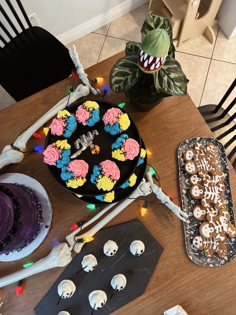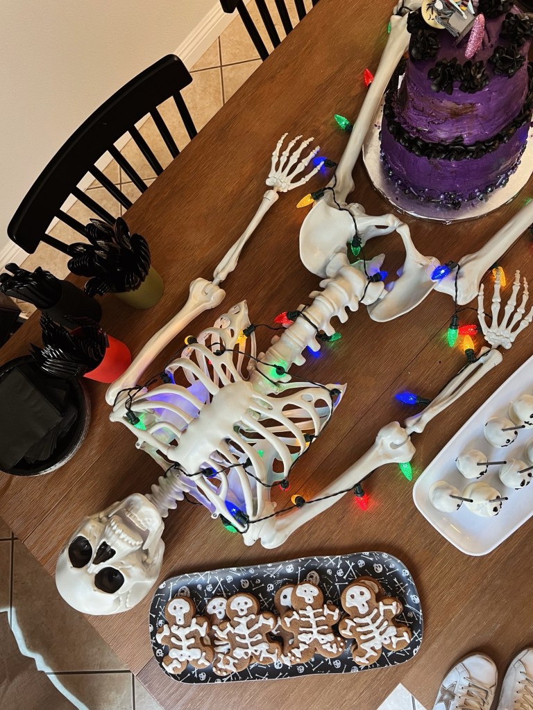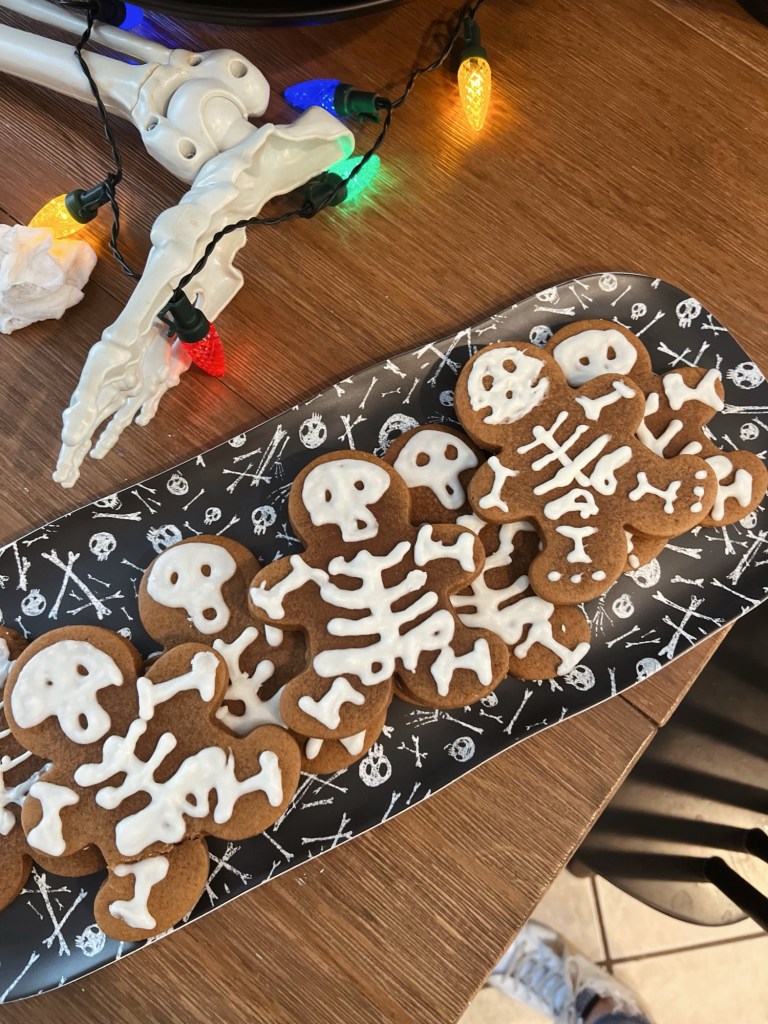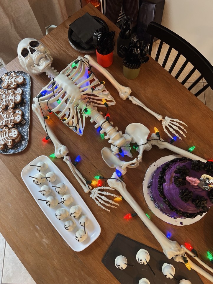 My best friend, as usual, made all the treats! The skeleton gingerbread were my favorite!! She makes them better than the ones at Disneyland! IYKYK.