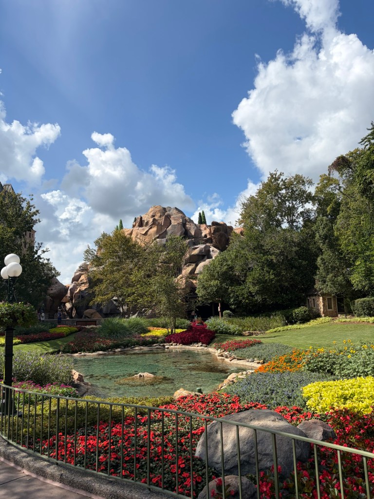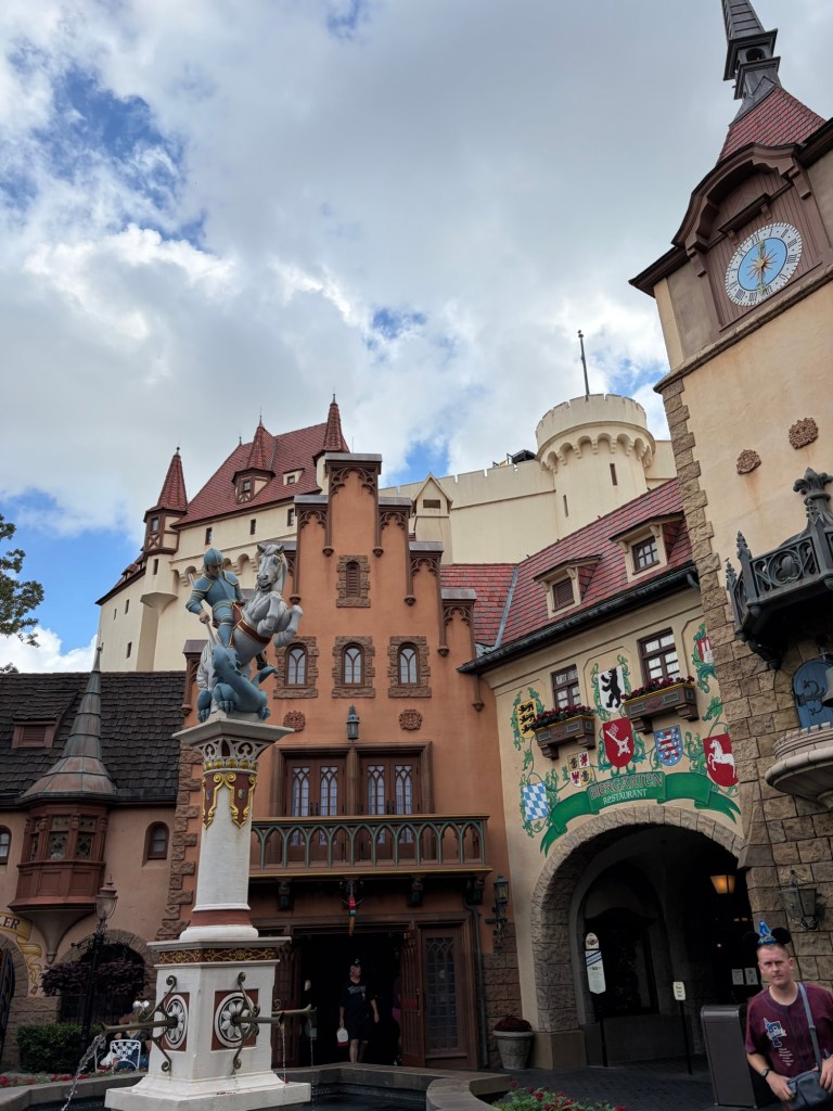 After completing all of our lightening lane passes, while we were circling back through a few countries to get our passports stamped, it started absolutely POURING! Like insanely hard and the streets were completely flooded! We ended up hiding in a bathroom with a few other groups of people for a good 40 minutes before the storm calmed down to a light enough sprinkle where we felt comfortable continuing on our journey lol.