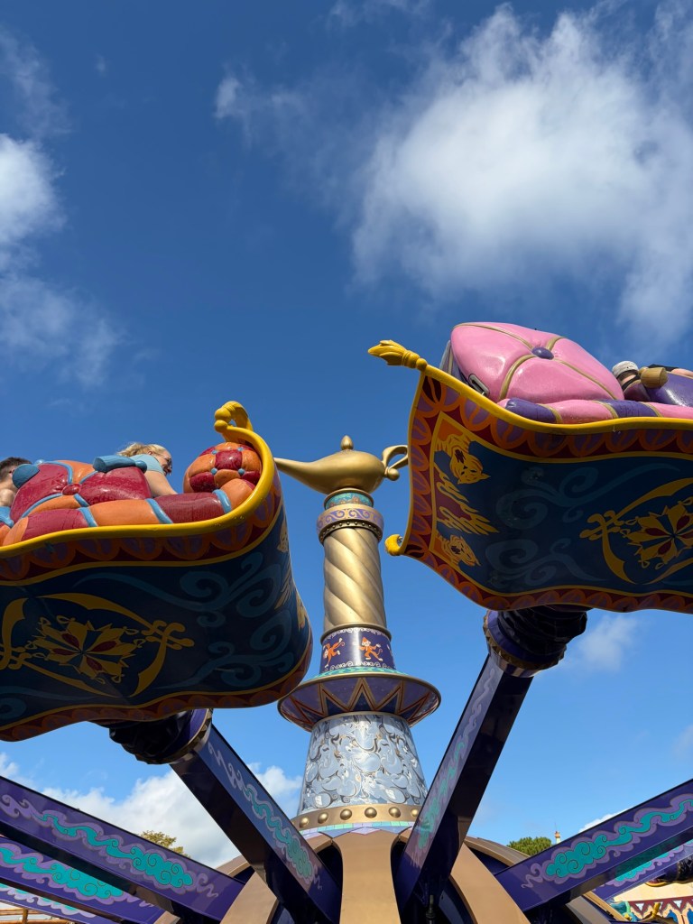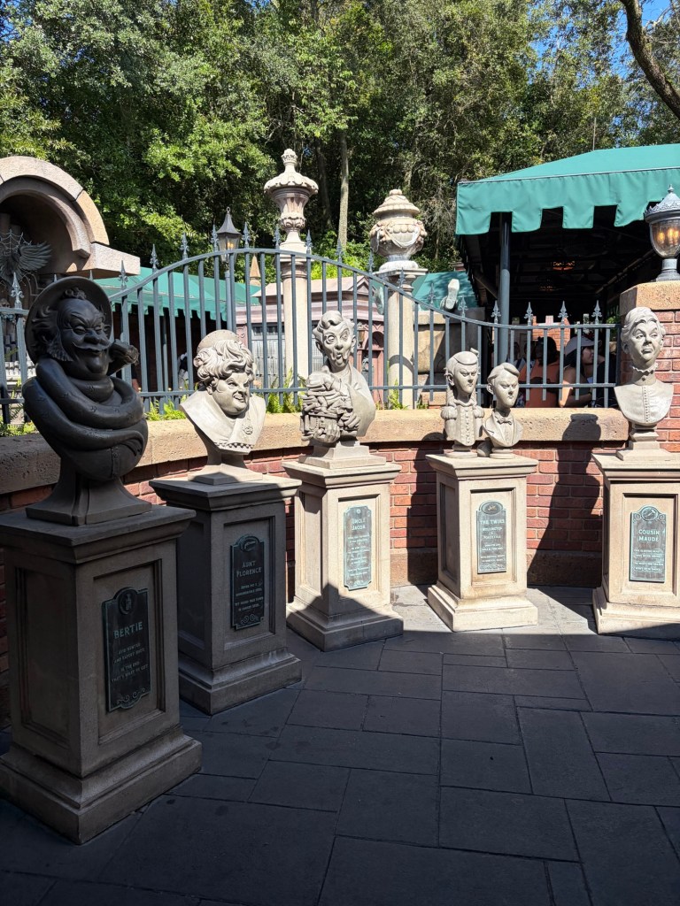 From there, we went to The Magic Carpets of Aladdin (a Dumbo style ride) and then ventured over to Haunted Mansion! Something that shocked me about this one- they didn’t do a holiday version of the ride! During the Halloween- Christmas seasons at Disneyland, they transform Haunted Mansion to a Nightmare Before Christmas ride, which we love!! Disney World kept Haunted Mansion as is, which is still obviously amazing. I will say that their mansion is much more mansion like lol. It’s definitely bigger and you spend some time on the ride in the “outside” area of the mansion, before even entering the “mansion”, which was really fun!