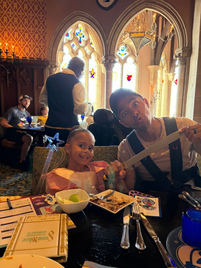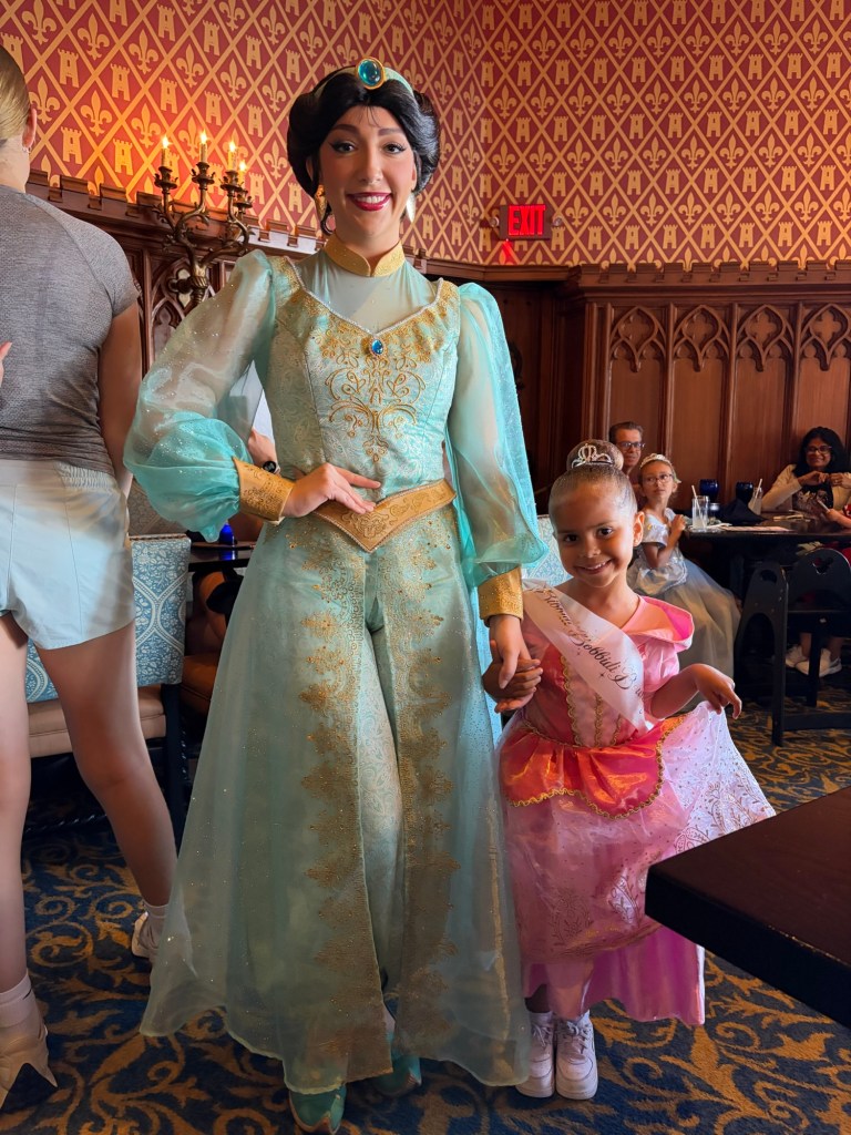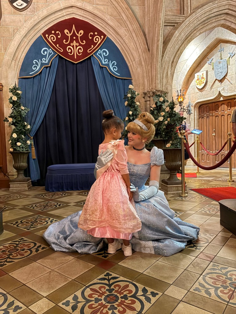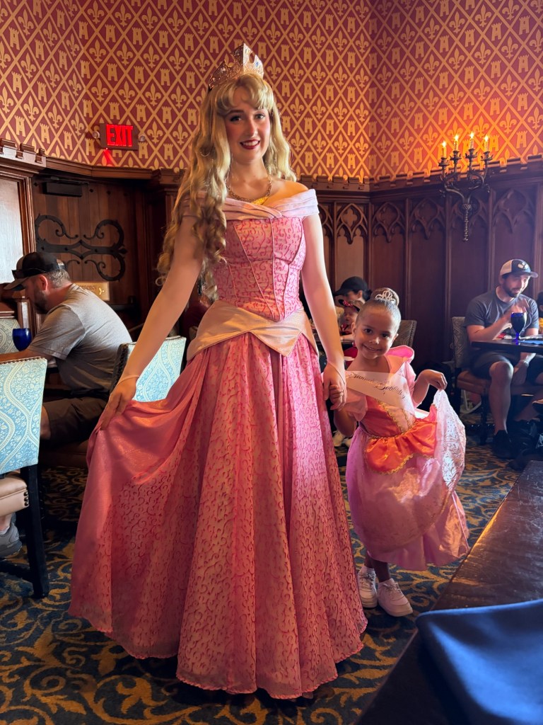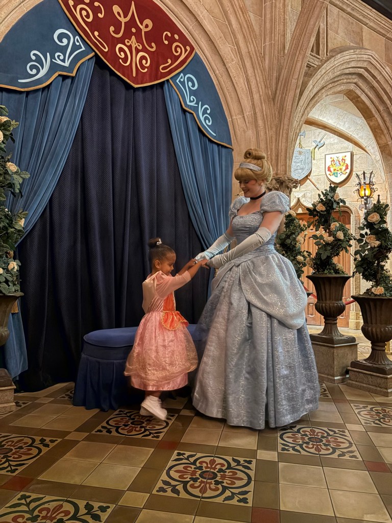 The only reservation we had, was a 3 pm reservation for Cinderella’s Royal Table– which is the restaurant inside the castle. Reservations are booked months in advance ( I ended up getting lucky about 2 weeks before our vacation and booked it immediately!) and they do require you to pay in full upon booking. It is also character dining, so it is on the more expensive side but the experience is HANDS DOWN the most magical thing EVER, especially if you have a little girl who loves princesses! More on the experience once we get to it in order of our day!