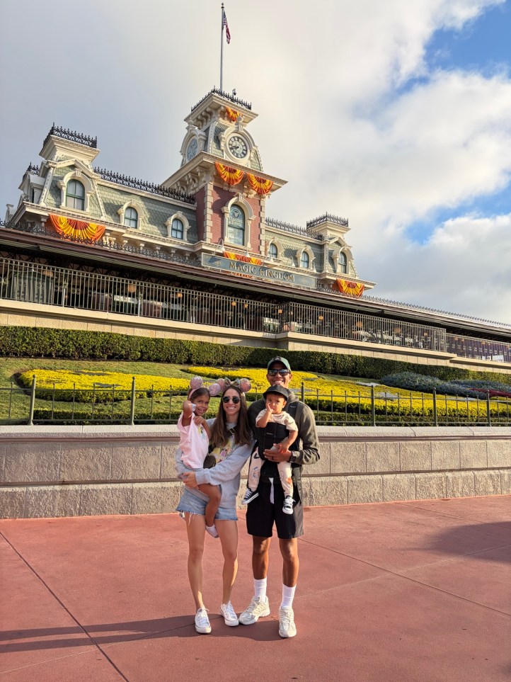We had just the most magical day top to bottom. To get to Magic Kingdom, we had two modes of transportation- one by boat directly from our hotel across the lagoon to the front of Magic Kingdom. This required us to break down the stroller, so we decided we would take the boat back at the end of the day and chose to tram from our hotel, directly to Magic Kingdom, which took 7 minutes. This was easier for the morning, because as mentioned before, my kids slept through their 4 am (CA time) wake up call.