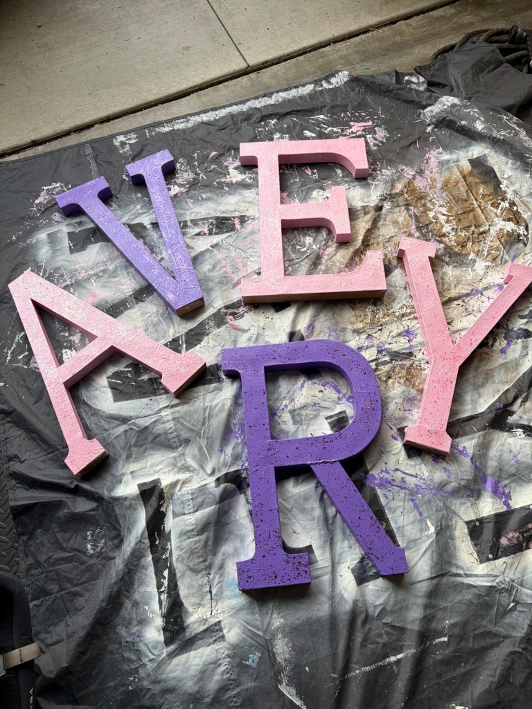 + AVERY letters : I bought these at a craft store 5 years ago for her first birthday party and now it’s been a little tradition for me to repaint them for every party!