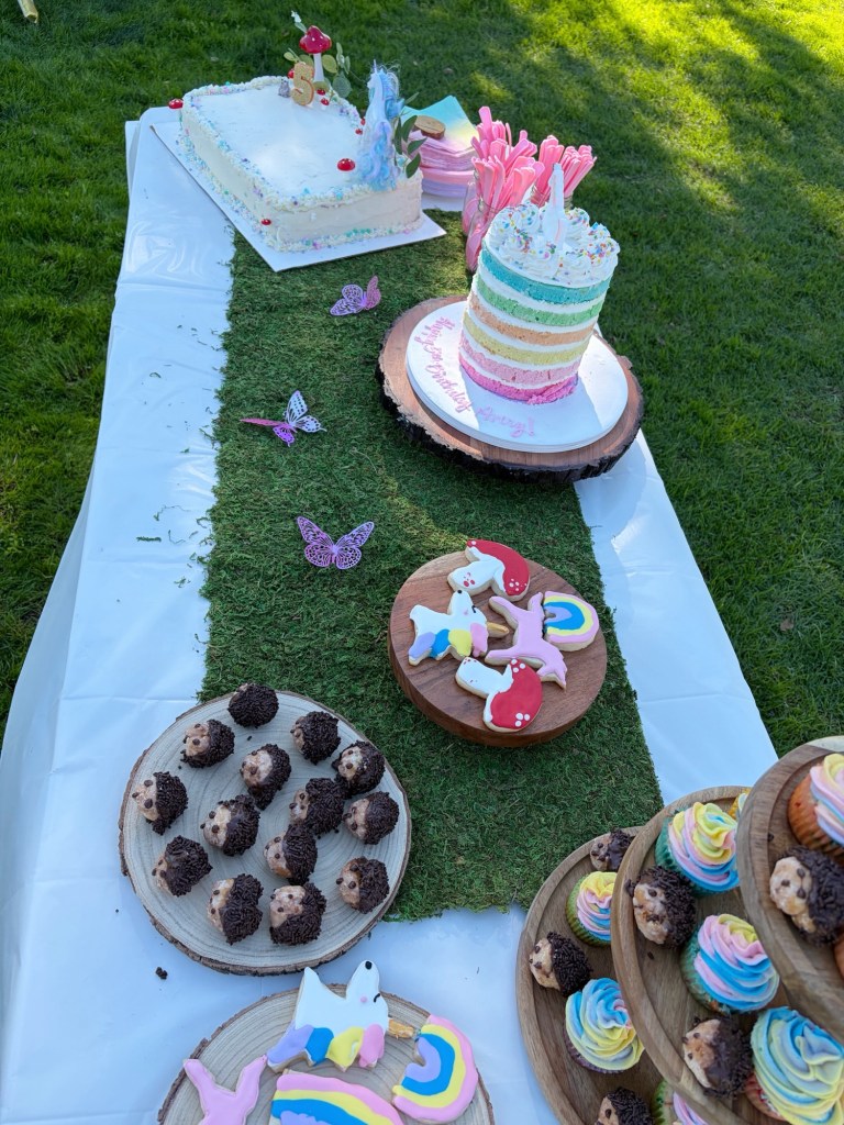 The rainbow cake we ordered from a local bakery and Avery’s fairy Godmother baked the other cake, made the donut roles, cookies, and cupcakes.