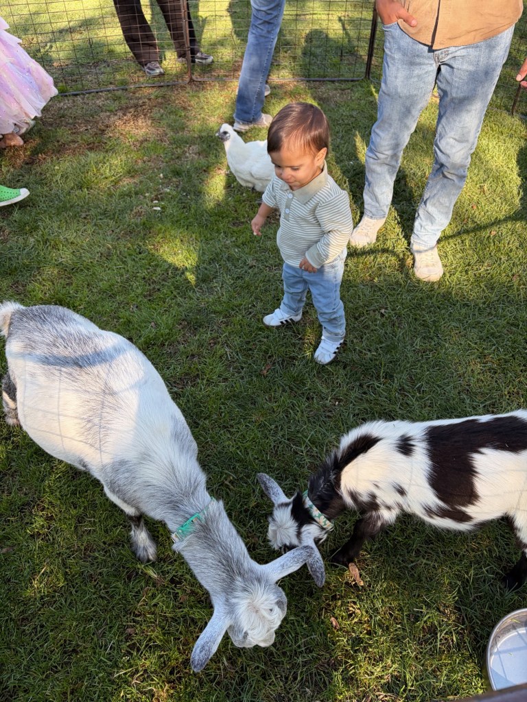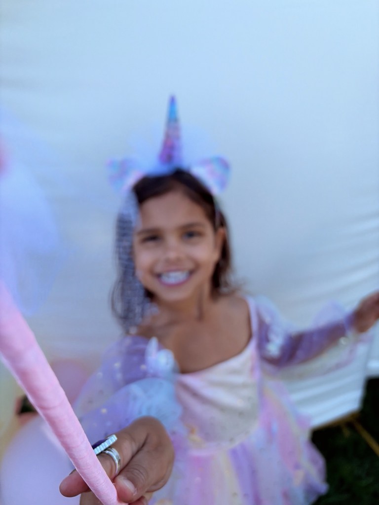 So I found a vendor that brought TWO unicorns and a petting zoo. It was literally the highlight of the entire day because my daughter loved it so much. My son’s favorite party was the petting zoo for sure, he loved the goats!