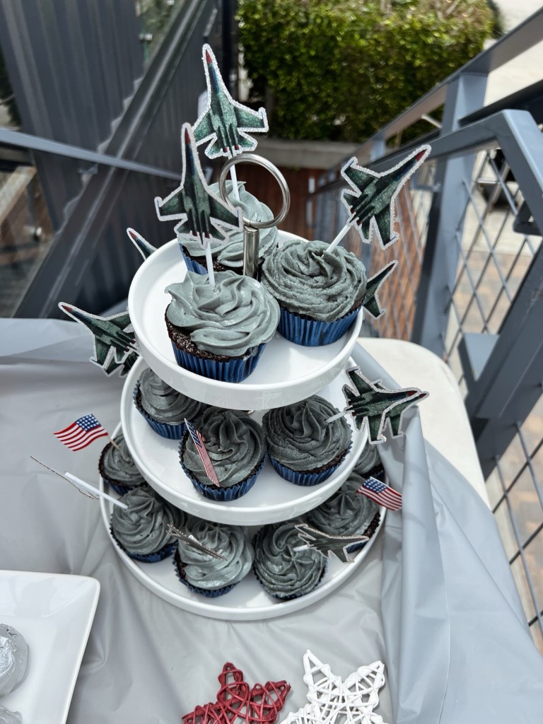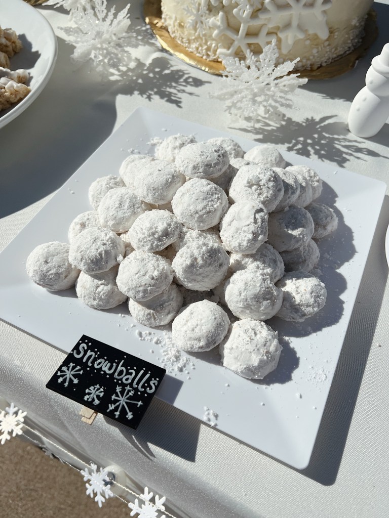 Next up, I design the dessert table and plan out what desserts I want to have and how I want them to be displayed, this includes what type of plates or serving trays I want to use. Usually from here, I plan the food tables- we usually cater and do a buffet style where everyone can just grab plates and serve themselves, no fancy decor here other than matching table cloths really.