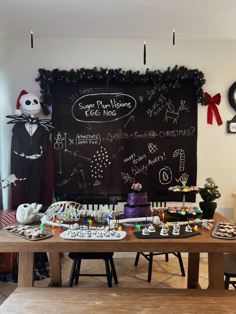 I’ve had a few requests to give more insight into my party planning process and where I start. Every party obviously starts with a theme, from there I swear I live and breathe the theme and do tons of Pinterest searches and watch whatever movie millions of times to see what I can pull for inspiration and more than anything, what I can customize for the kids; like with their names, favorite colors, etc that fit the vibe. I’m also a little crazy and I love when the theme rhymes or somehow matches the age the kids are turning. I don’t think I’ll every top my daughter’s Nightmare B4 Christmas birthday party. It’s still my favorite to date.
