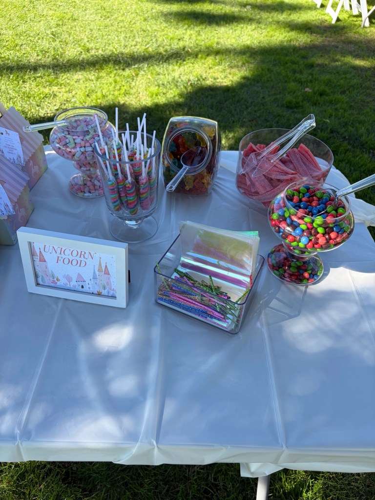 I think for kids, it’s fun to have some sort of craft to do at parties, or a craft they can take home as well. In the past I’ve done diy cookie making (gingerbread cookies), custom coloring pages, tattoos, a candy bar, magnet painting, wooden seashell painting, unicorn painting- just something fun and on theme for the event!