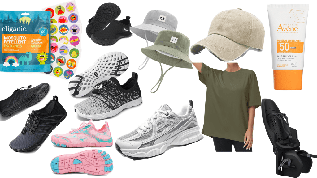 + mosquito repellent patches/stickers for kids : we stuck these on the kids clothes and then on their bike seats! These are deet free and the smell isn’t strong at all which is great.
